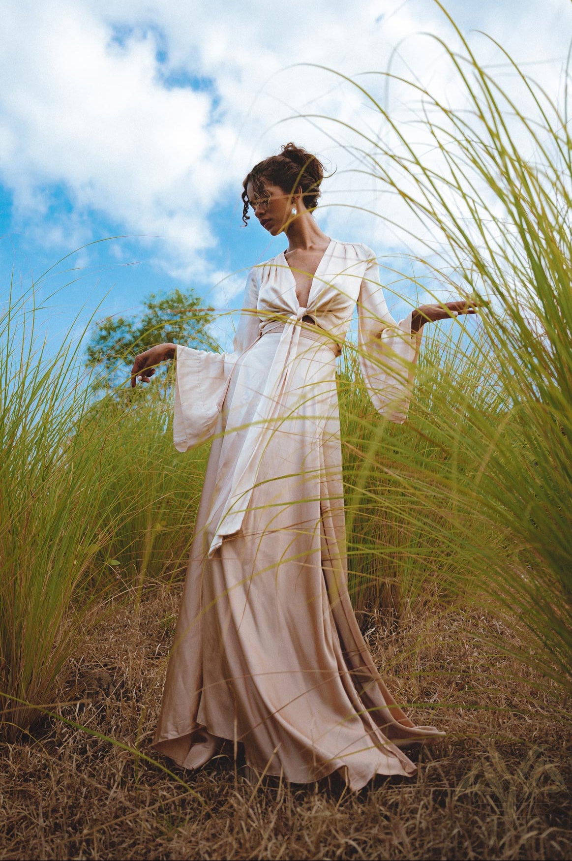 Handwoven fabrics, natural fibers, and botanical dyes come together in pieces designed to protect, envelop, and elevate the silhouette.
